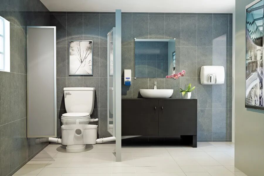卫生间使用升利倍污水提升器,它拥有强力搅碎系统,大大降低堵塞困扰;大功率高扬程,适用于各种人流量大的公共场所,远距离排污也无压力。该设备机身小巧,可隐藏在马桶后面不影响装修风格。